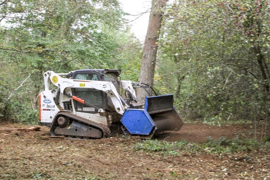 Hydraulicky poháněné mulčovače Augertorque pro smykem řízené nakladače a bagry do přibližně 15 tun.