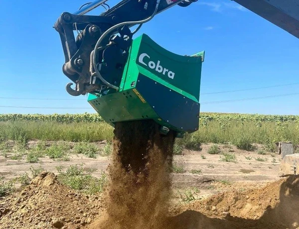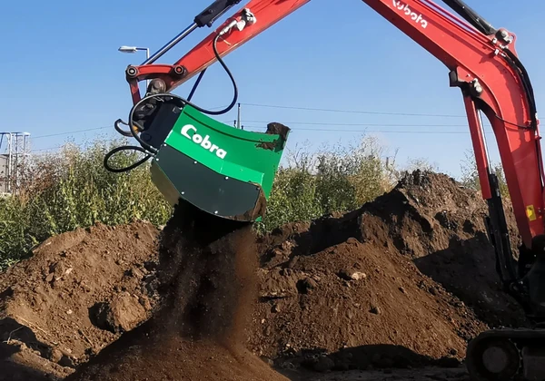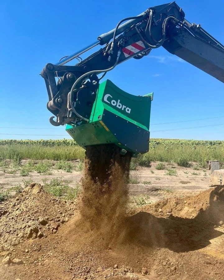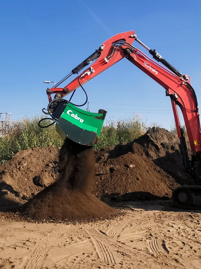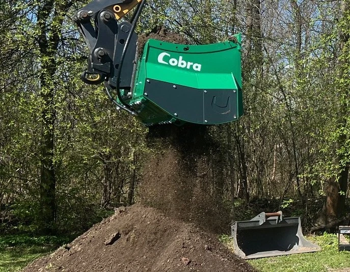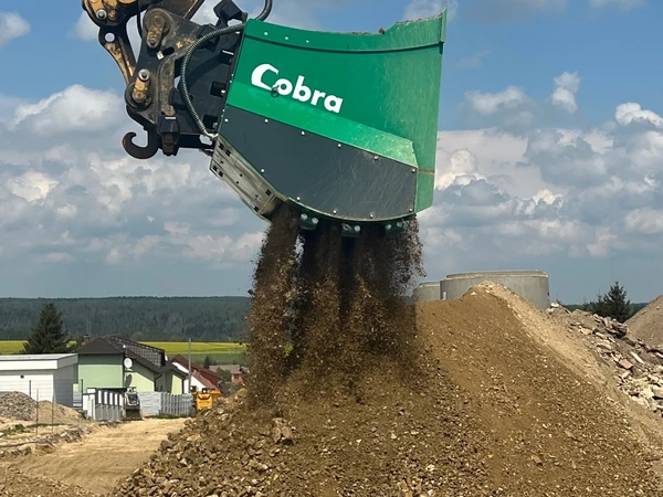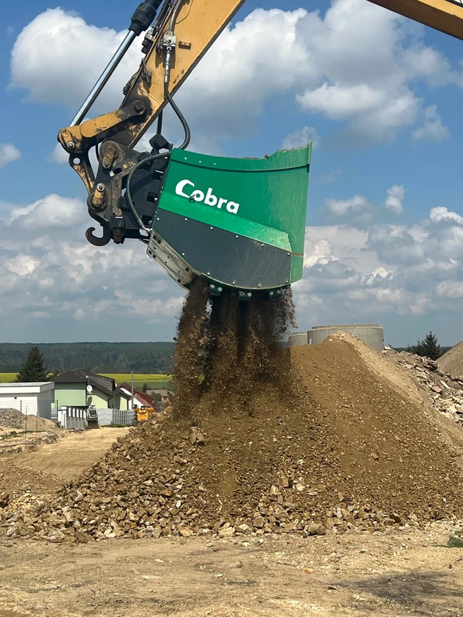 Třídící lopaty Cobra se používají na nakladačích a rypadlech, umožňují třídit, prosévat, drtit, míchat a provzdušňovat různé vstupní materiály včetně mokrých a lepivých a vytvořit z nich materiál vhodný k dalšímu využití.